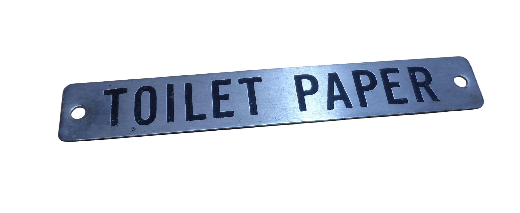 TOILET PAPER. Original Old Sign Railroad Train Restroom Bathroom Powder Room TP. Measures approximately 3/4" by 5". Showing wear associated with age and use. View all photos for additional information and to judge condition for yourself. Surface wear etc noted. Wonderful piece to add to your collection -dr3.0525-