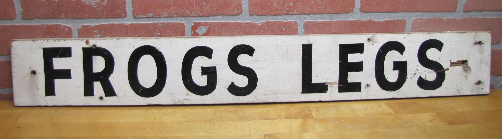 FROG LEGS Folk Art Wooden Restaurant Boardwalk Food Vintage Advertising Sign
