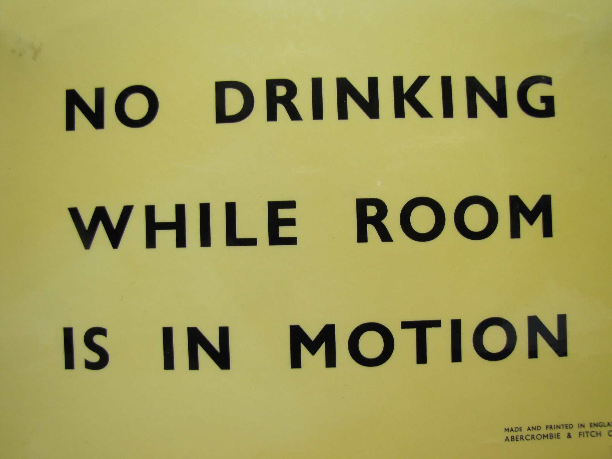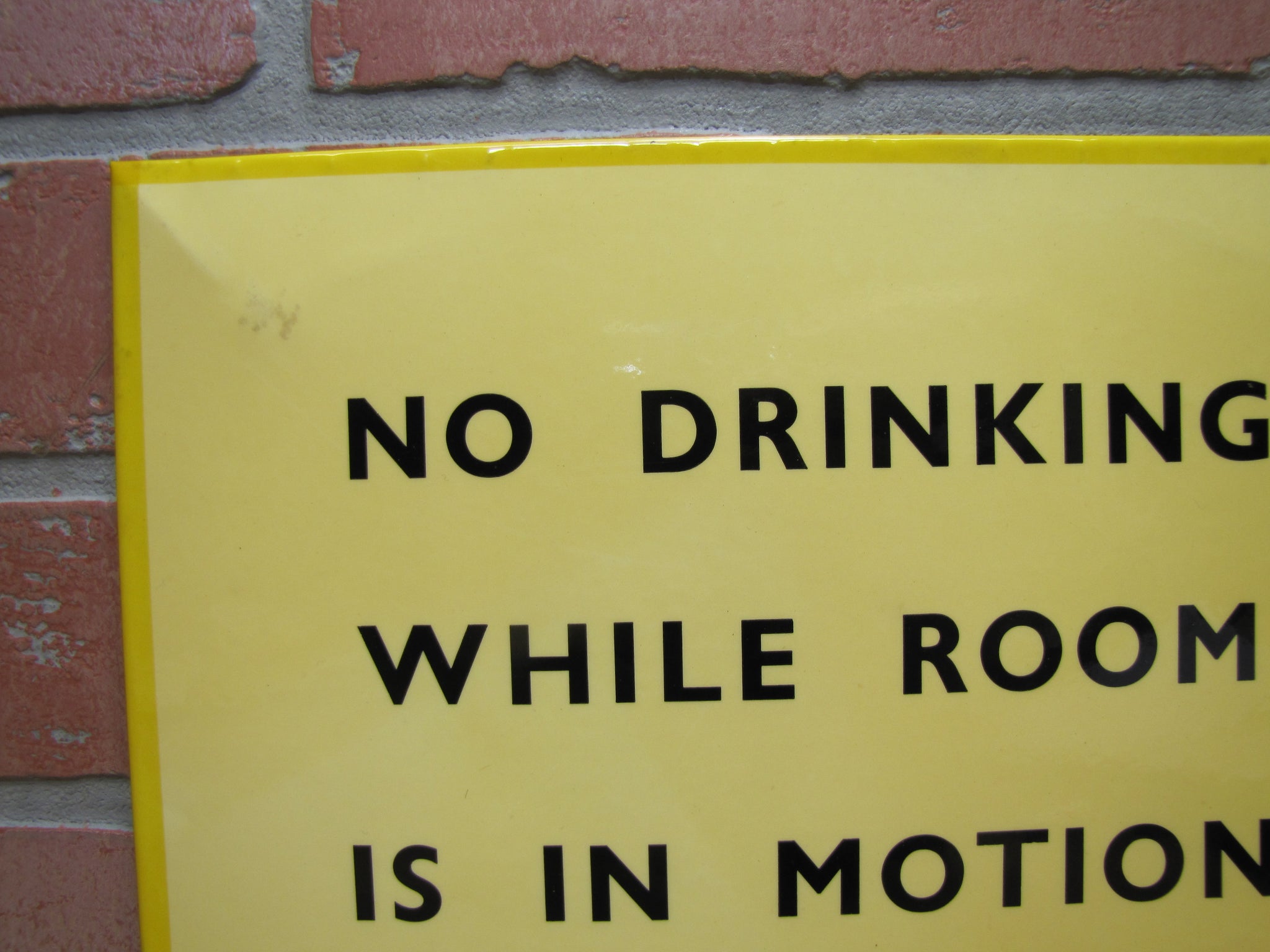 NO DRINKING WHILE ROOM IS IN MOTION