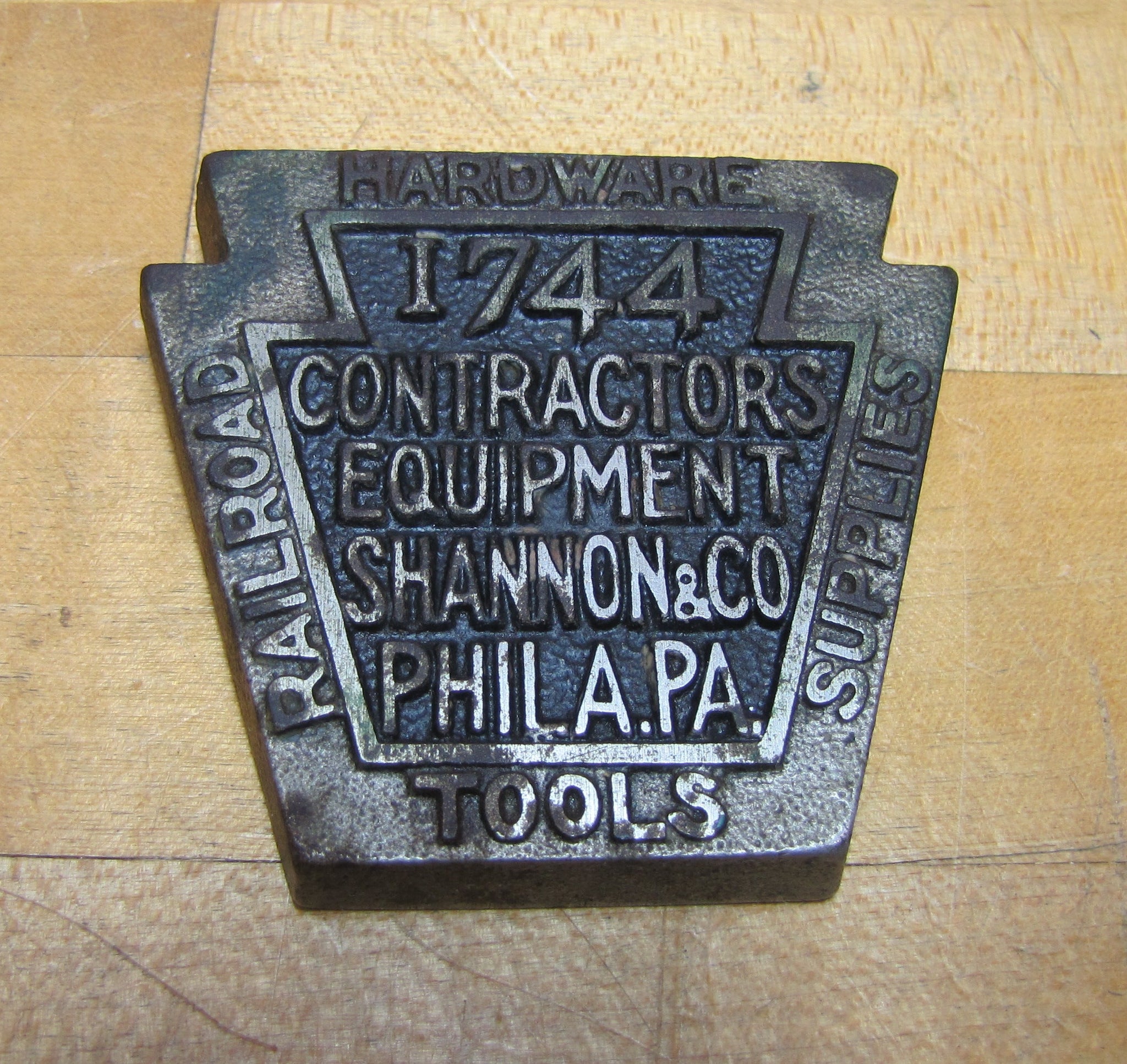 SHANNON & CO PHILA PA CONTRACTORS EQUIPMENT RAILROAD HARDWARE TOOLS Paperweight